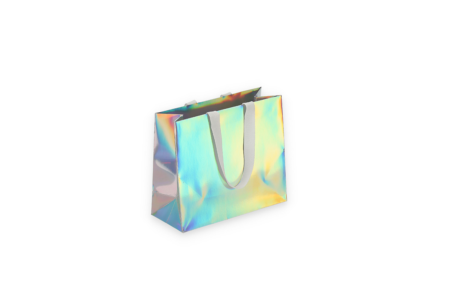 HOLO-1: 240x100x205 mm Luksusa papīra hologrāfiskā soma ar auduma rokturiem