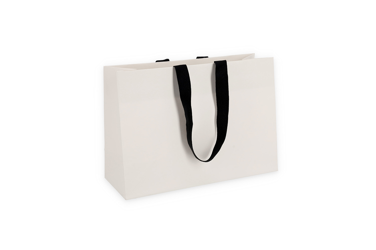 Baltie dāvanu maisiņi no 190 g/m² FSC™ sertificēta papīra – minimālisma estētikas un uzticamas kvalitātes apvienojums.