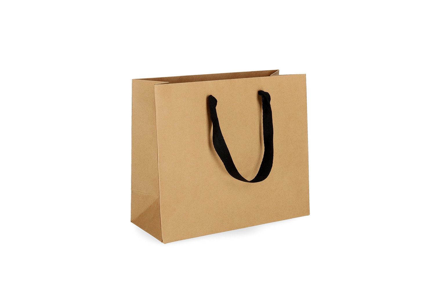 OMG-8: 450x150x350 mm Grezns papīra dāvanu maisiņš ar ielīmētiem melniem auduma rokturiem