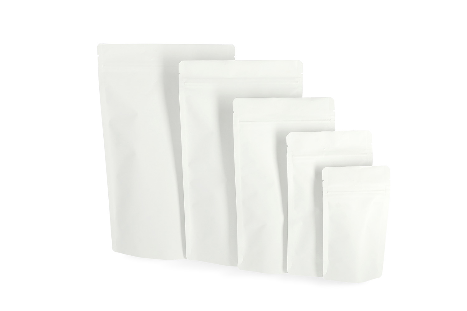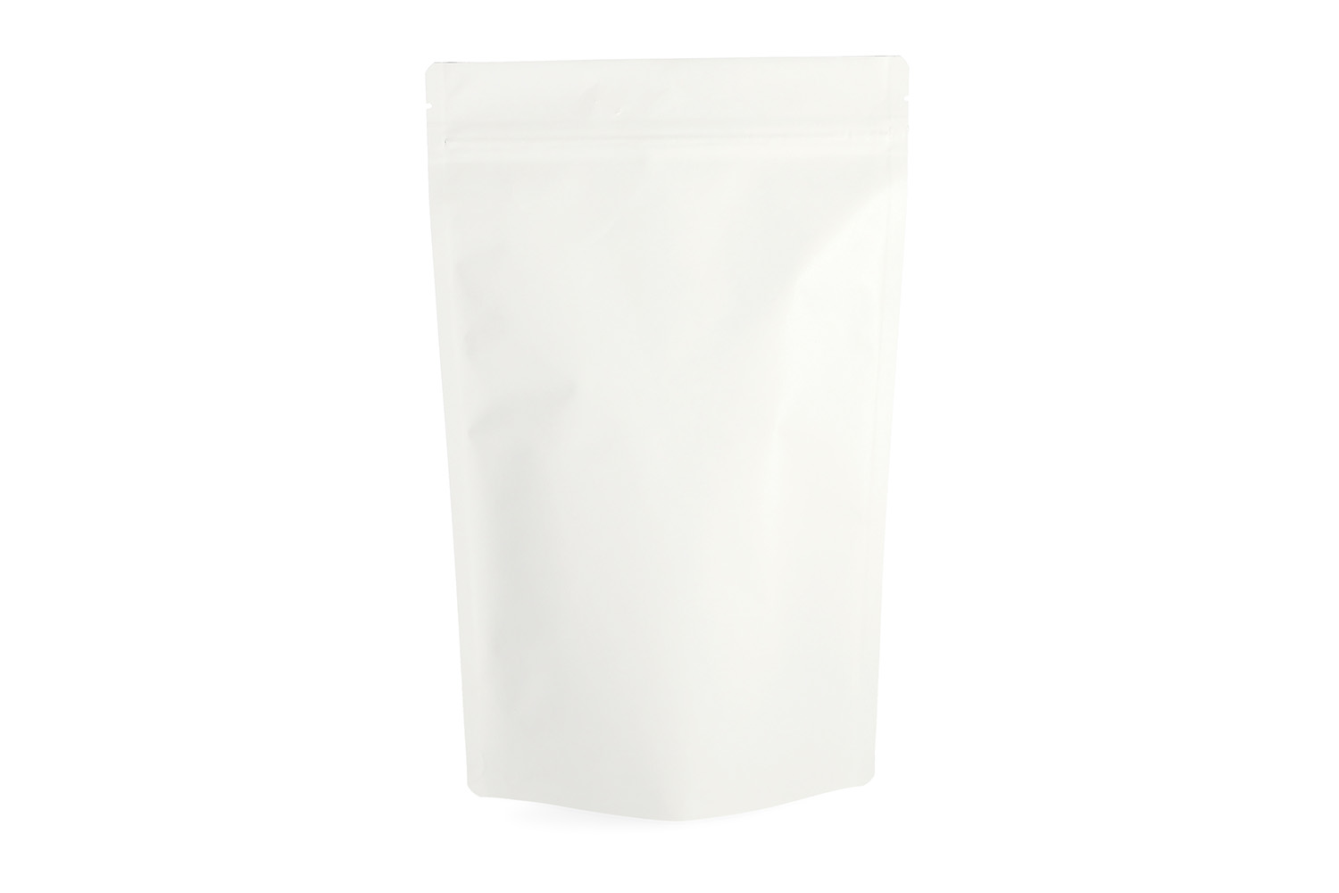 DOY-B: Balti stāvo tipa Doypack maisiņi, 100 gab